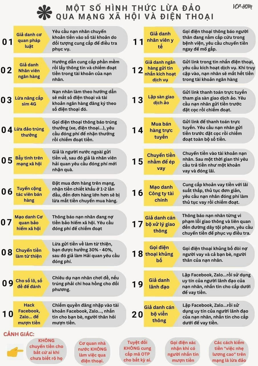 Một số hình thức lừa đảo qua điện thoại và mạng xã hội. (Ảnh: Cục Thuế Thành phố Hồ Chí Minh). |