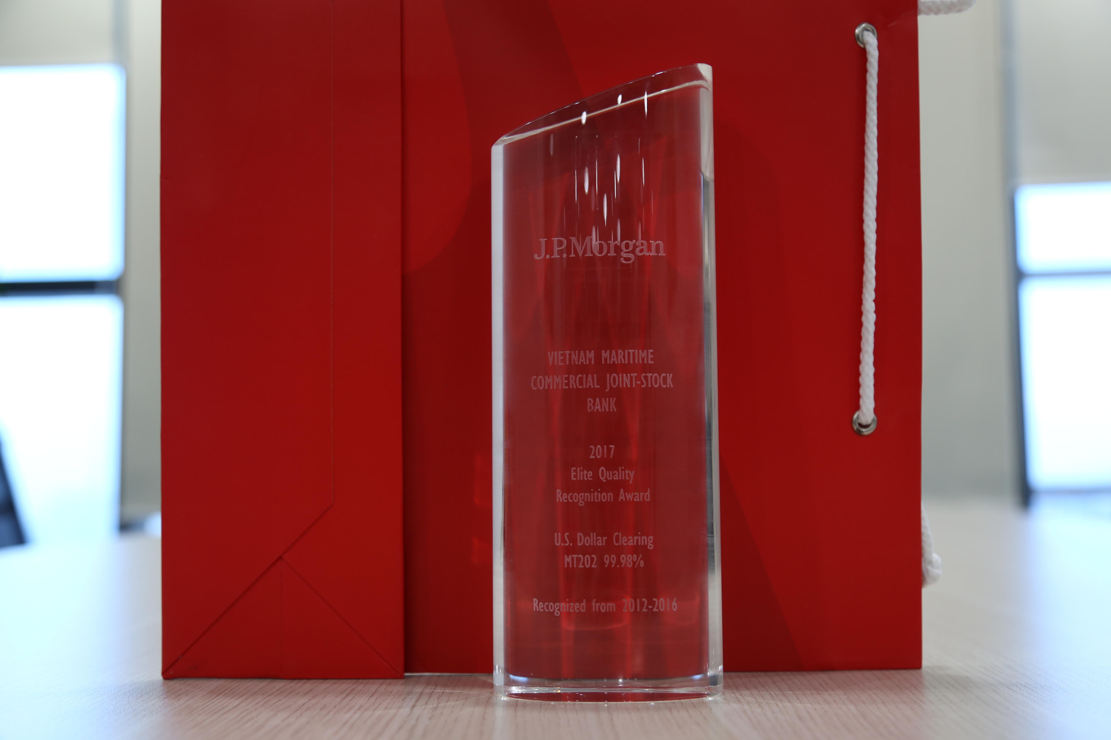 Elite Quality Recognition Awards 2017 là sự ghi nhận của ngân hàng JP Morgan, một trong những ngân hàng có lịch sử lâu đời nhất trên thế giới và là ngân hàng hàng đầu trong lĩnh vực cung cấp dịch vụ tài chính, đầu tư và quản lý tài sản và dịch vụ ngân hàng đại lý dành cho chất lượng hoạt động thanh toán của Maritime Bank.