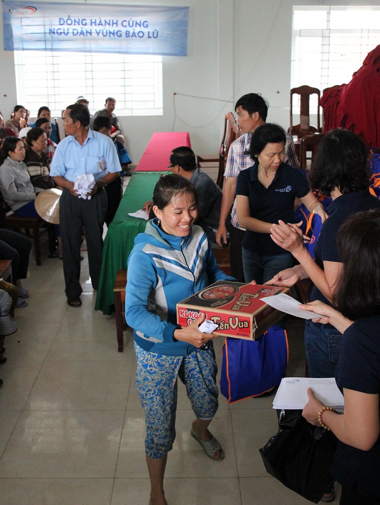 Trong chuyến đi đến các địa phương bị ảnh hưởng bởi bão lũ số 12, Masan Consumer đã đến thăm bà con ngư dân xã Vạn Hưng, huyện Vạn Ninh, Tỉnh Khánh Hoà. Đây là một trong những xã mà tâm bão số 12 đi qua. Tại đây, Masan Consumer đã trao tặng 200 hộ ngư dân mỗi hộ 1 triệu đồng và một số sản phẩm tiêu dùng thiết yếu đến bà con.