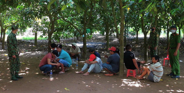 Khoảng 12h30 ngày 17/5, nhận tin báo tại khu vực tổ 11, ấp 5, xã Vĩnh Xương, thị xã Tân Châu, tỉnh An Giang có nhiều đối tượng tổ chức đá gà và lắc tài xỉu ăn thua bằng tiền, Công an thị xã Tân Châu, tỉnh An Giang phối hợp lực lượng Đồn Biên phòng Cửa khẩu Quốc tế Vĩnh Xương đến hiện trường mật phục để triệt phá.
