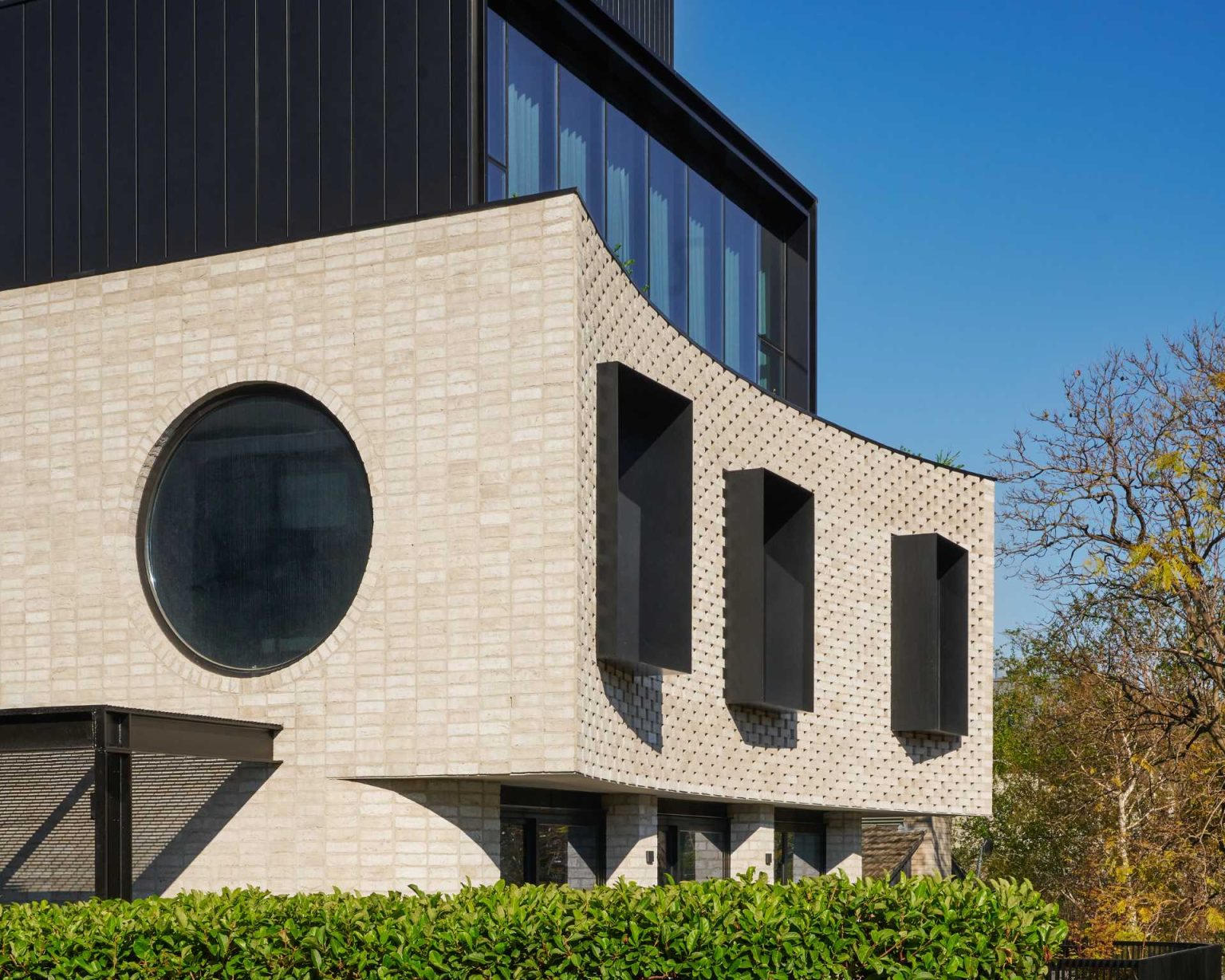 Mặt tiền bằng gạch cong tạo nét đẹp đương đại cho căn nhà phố
