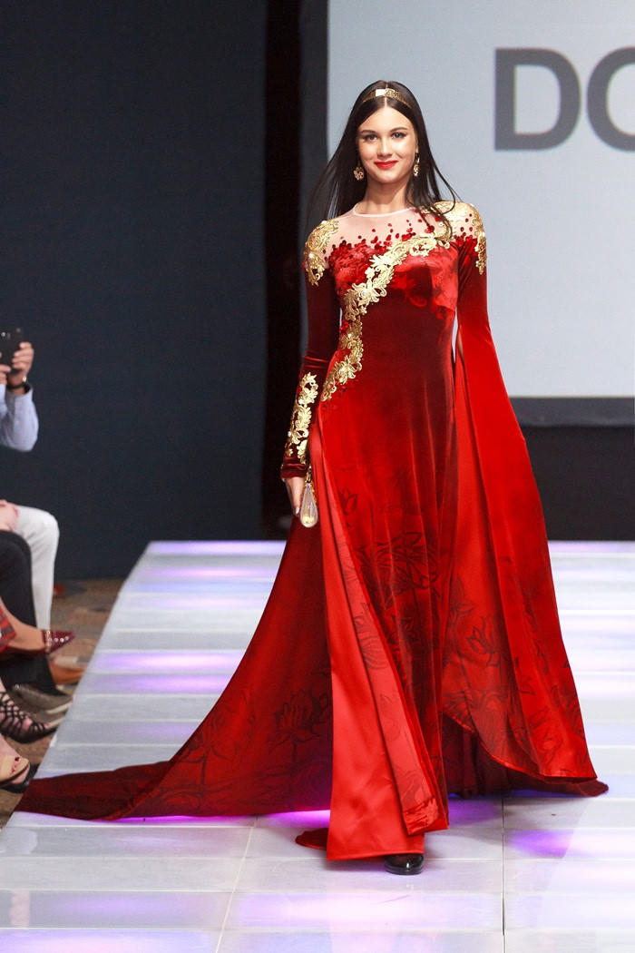Trang phục Couture của Valentino lấy cảm hứng từ tà áo dài thướt tha của Việt Nam.