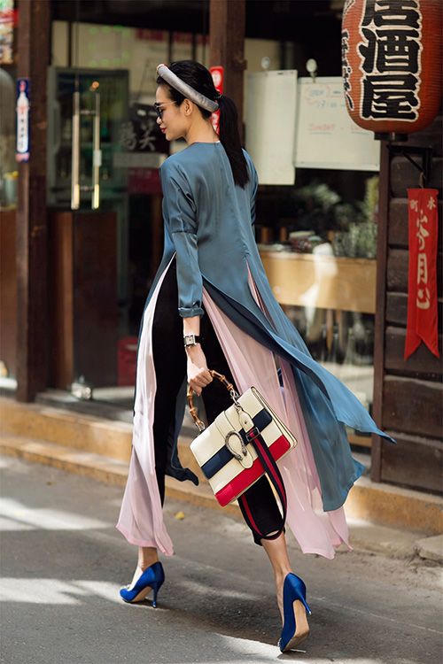 Những chiếc áo dài thời trang mang đậm dấu ấn của nhịp sống đương đại, phá bỏ chuẩn mực của chiếc áo dài truyền thống và chỉ còn lưu giữ lại một đến hai chi tiết đặc trưng như cổ đứng, vạt áo, xẻ ngang hông, tay raglan… Còn gì thú vị hơn khi đường nét của tà áo dài truyền thống được giao thoa cùng xu hướng thời trang phương Tây để người mặc trở nên thật phong cách và không bị trật nhịp khỏi dòng chảy của thời trang.