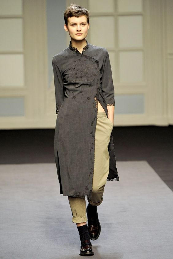 Áo dài được nhiều nhà thiết kế ngoài nước lấy làm cảm hứng thiết kế. Trong hình là một mẫu thiết kế áo dài thời trang của thương hiệu Paul Smith A/W11.