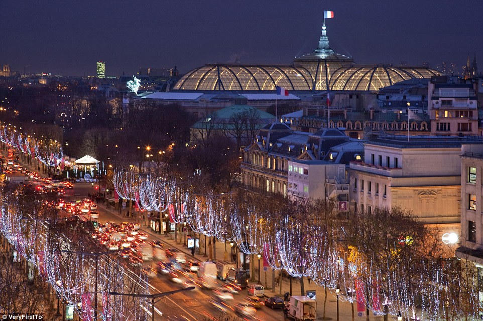Kinh đô ánh sáng Paris là điểm thu hút rất đông khách du lịch. Noel 2016 Paris được trang hoàng vô cùng lộng lẫy, đặc biệt là tại tháp Eiffel.