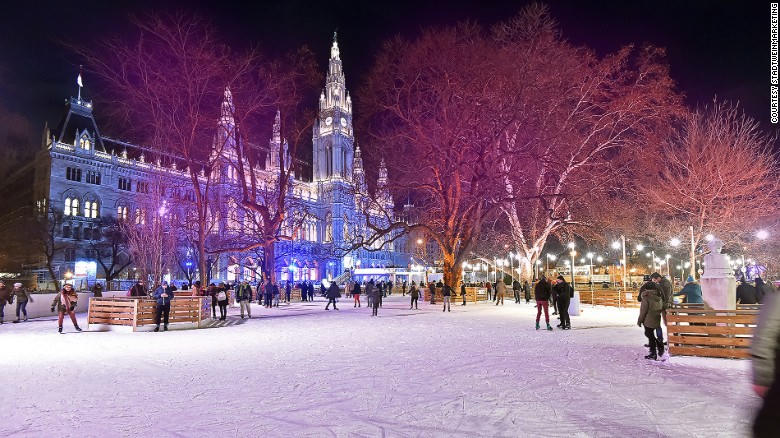 Tại Vienna, Áo, một sân trượt băng lớn được trang trí lộng lẫy với phong cách cổ điển. Du khách, trẻ em có thể cưỡi tuần lộc và vui chơi thoải mái.