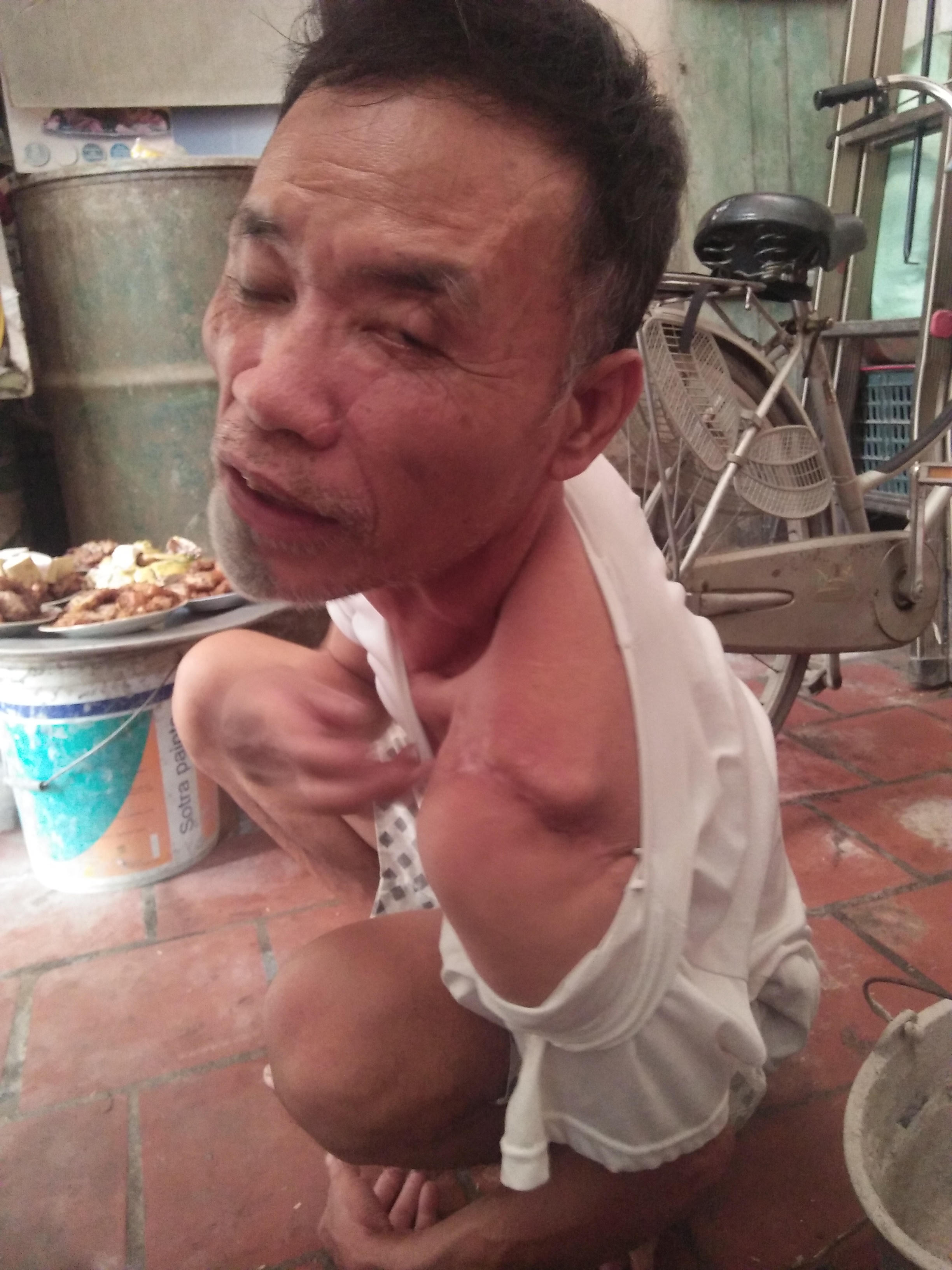 Nằm viện chữa trị hơn năm rưỡi ông Được mới được ra về, nay tàn phế, thậm chí nhiều sinh hoạt cá nhân phải nhờ người thân hỗ trợ. “Những lúc như thế, tôi chỉ biết ôm mặt khóc”, bị hại kể.