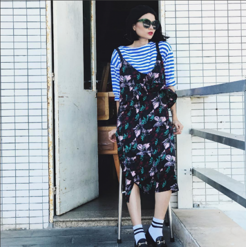 Váy hoa 2 dây phối cùng áo thun tạo nên một sự kết hợp tuyệt vời, vừa nữ tính nhưng lại trẻ trung.