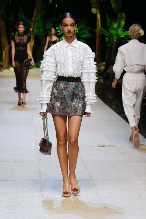 Xu hướng mới nhất đến từ BST Xuân-Hè tuyệt vời năm 2017 với sự xuất hiện của váy tầng với lớp nhún bèo được cắt mềm mại, làm mỗi bước đi của các cô nàng uyển chuyển và quyến rũ hệt những vũ công Latin tuyệt vời đang biểu diễn trên sàn diễn.