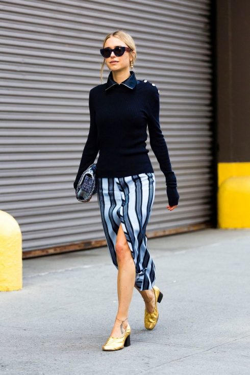 Năm 2017 có thể xem là sự lên ngôi của váy midi. Vào những thập niên trước, chân váy midi truyền thống xuất hiện trở thành một biểu tượng cho sự tinh tế, đậm phong cách quý cô với chiếc váy dài hơi quá gối, cạp cao “thắt đáy lưng ong”, dáng xòe phồng. Ngày nay, sự trở lại của nó được trông đợi hơn bao giờ hết vì sự phối hợp đầy duyên dáng, phối được với nhiều phong cách khác nhau.