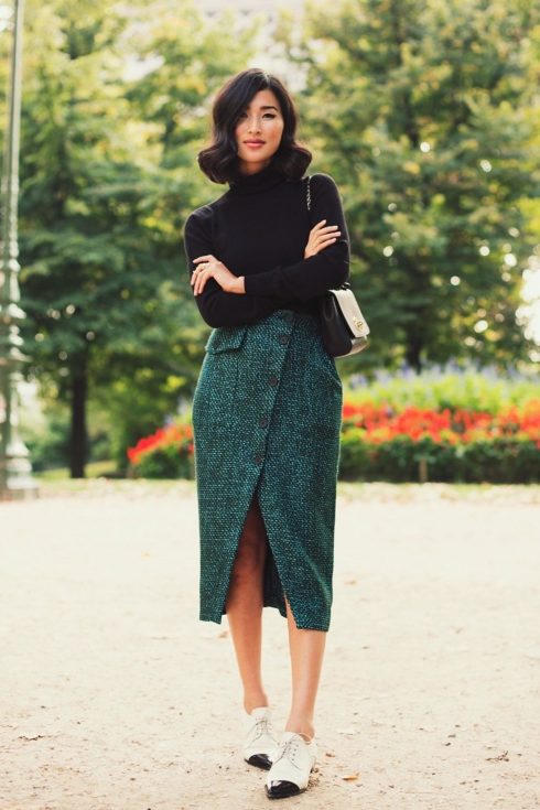 Ở những nơi nguyên tắc và hơi cứng nhắc như công sở, đường xẻ cao có thể làm mờ đi mọi cảm giác nghiêm nghị thường thấy, tôn lên đường nét quyến rũ của phái đẹp. Chiếc váy xẻ tà một bên kết hợp với giày cao gót quai mảnh tôn dáng sẽ mãi là sự lựa chọn hoàn hảo cho một vẻ ngoài quyến rũ mà mọi cô gái muốn kiếm tìm.