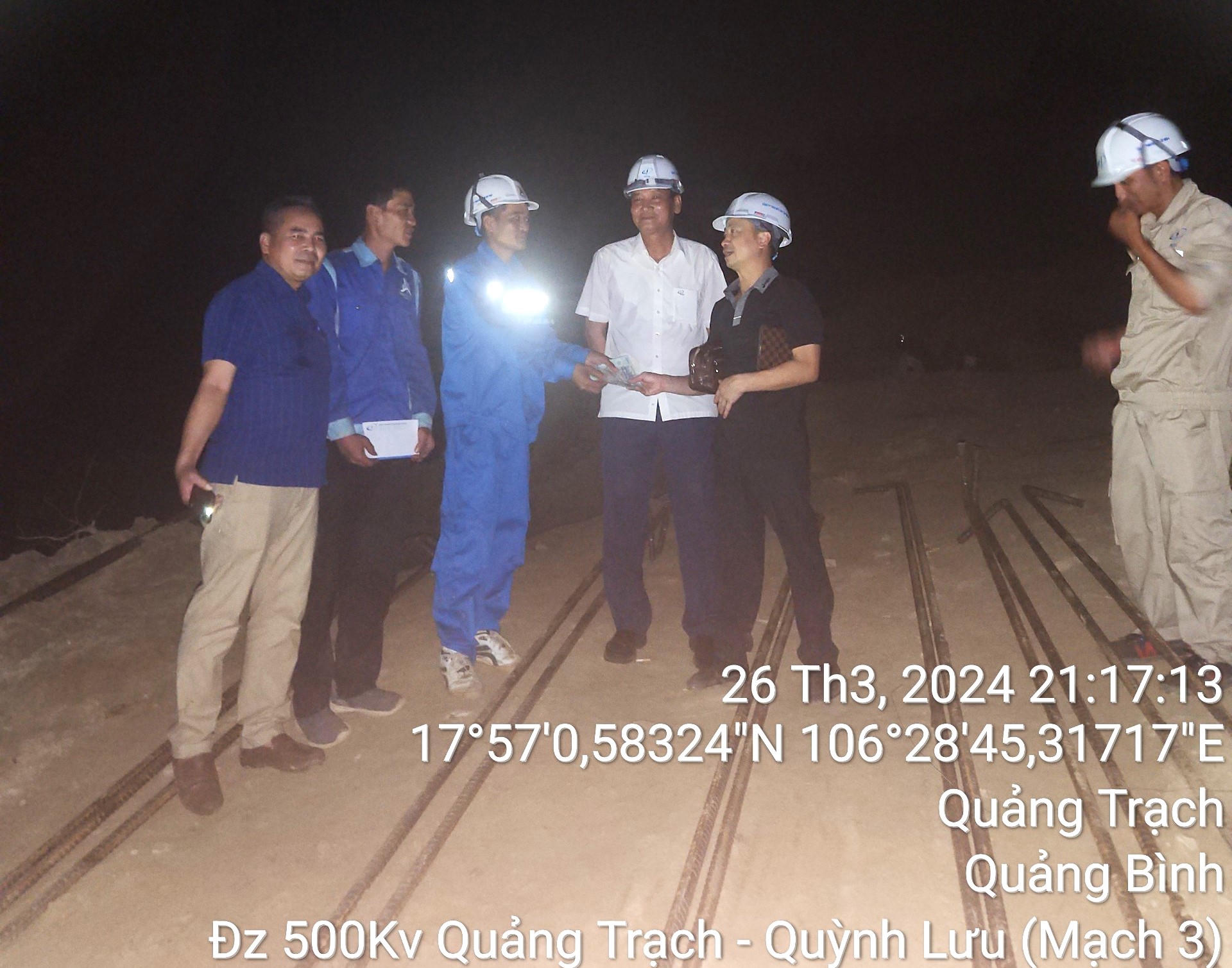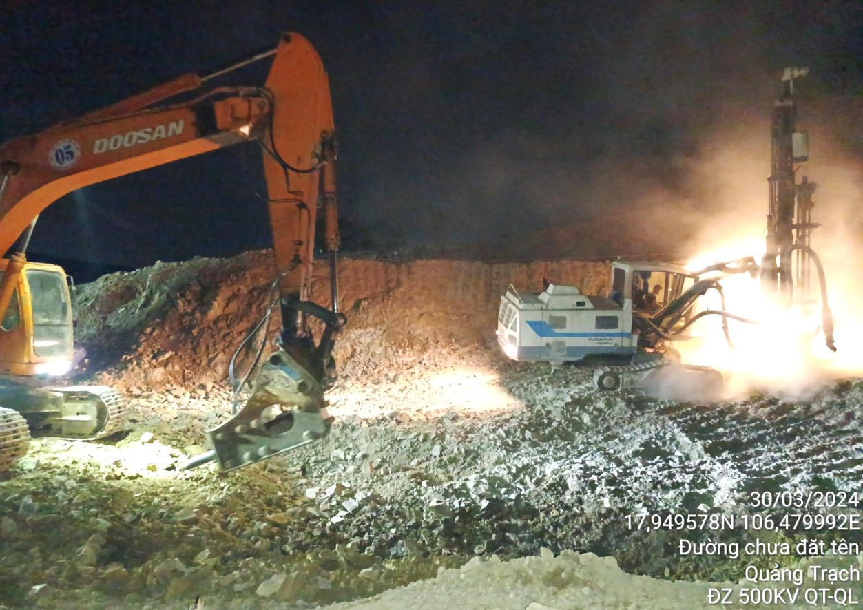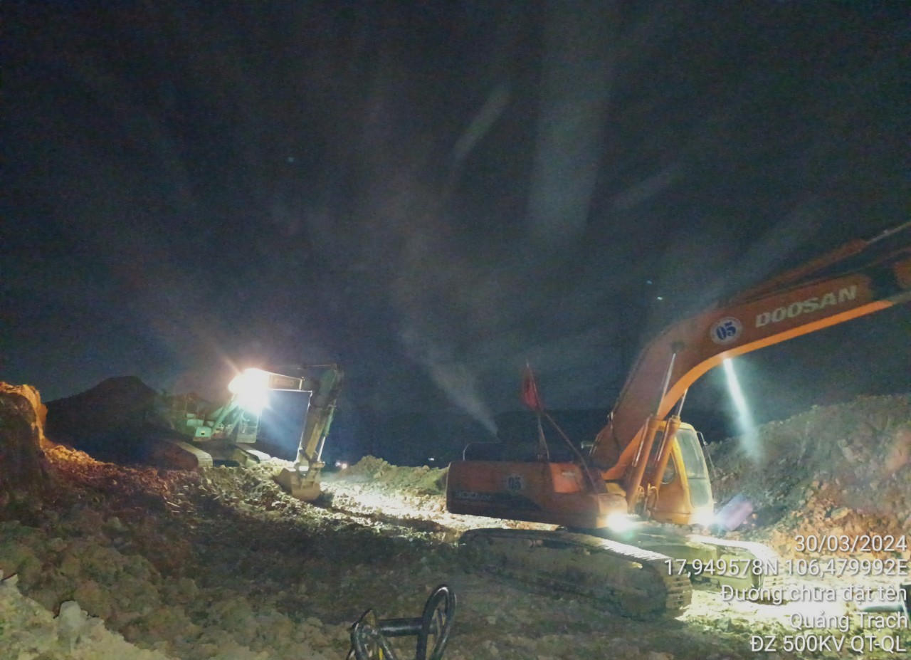 Máy chạy xuyên đêm trên công trường đường dây 500kV mạch 3