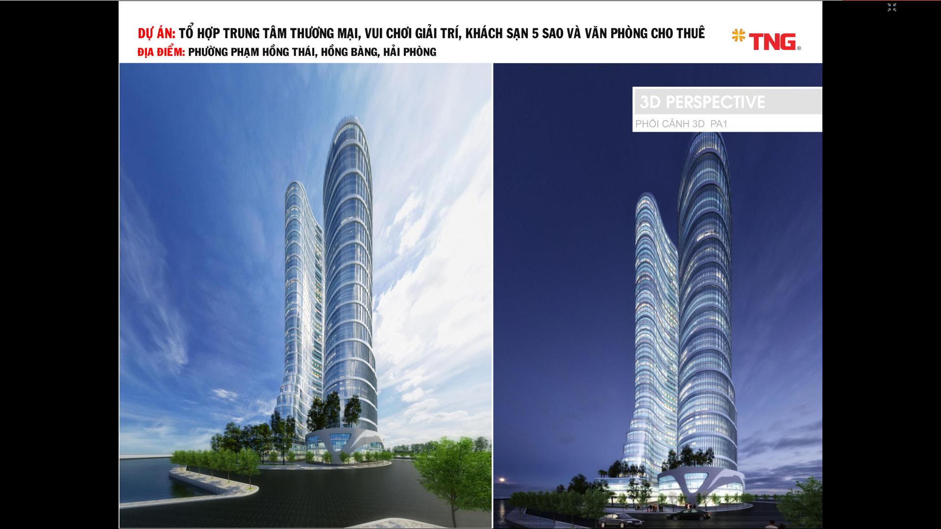 Phối cảnh tổ hợp trung tâm thương mại – vui chơi giải trí khách sạn 5 sao và văn phòng cho thuê tại Chợ Sắt (Hải Phòng). |