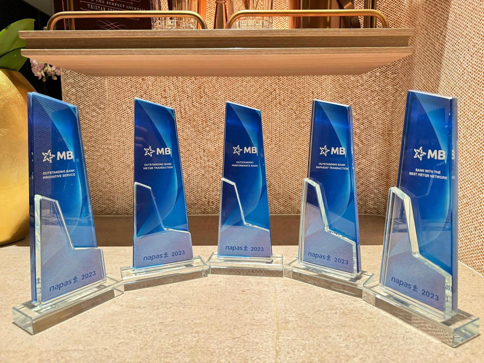 MB vinh dự đạt đồng thời 5 giải thưởng lớn nhất: Ngân hàng hiệu quả nhất, Ngân hàng có số lượng giao dịch chuyển tiền lớn nhất, Ngân hàng có mạng lưới VietQR lớn nhất, Ngân hàng có số lượng giao dịch VietQR lớn nhất và Ngân hàng năng động nhất.