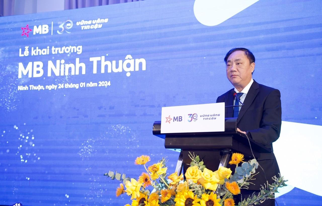 Phát biểu tại sự kiện khai trương MB Ninh Thuận, Chủ tịch Hội đồng Quản trị MB, ông Lưu Trung Thái khẳng định, MB Ninh Thuận khai trương có ý nghĩa vô cùng đặc biệt bởi năm nay là dấu mốc kỷ niệm MB tròn 30 năm thành lập. Ông Thái cũng chia sẻ, ngay trong tháng 1 năm nay, MB đã nhanh chóng hoàn thành và đưa vào khai trương hoạt động 04 chi nhánh mới, trong đó có MB Ninh Thuận.