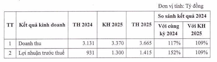 Lợi nhuận trước thuế đạt 1.415 tỷ đồng hoàn thành 109% kế hoạch và tăng 52%; lợi nhuận sau thuế đạt 1.131 tỷ đồng, cũng tăng 52% so với năm trước.