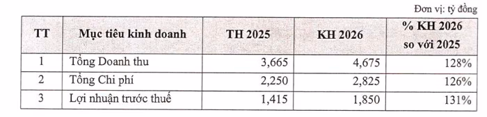 Đại hội trình kế hoạch kinh doanh năm 2026 với mục tiêu tổng doanh thu 4.675 tỷ đồng và lợi nhuận trước thuế 1.850 tỷ đồng, lần lượt tăng 128% và 131% so với kết quả thực hiện năm 2025. Đồng thời, MBS đặt mục tiêu lọt Top 3 về hiệu quả hoạt động và Top 5 về thị phần môi giới.