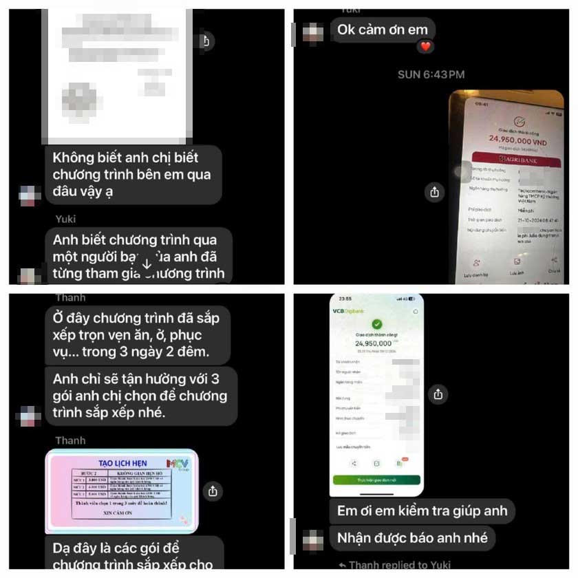 Nạn nhân vụ lừa đảo tham gia show "Bạn muốn hẹn hò" ở nước ngoài gửi hình ảnh chuyển khoản, tin nhắn cho MC Cát Tường để cảnh báo mọi người. |