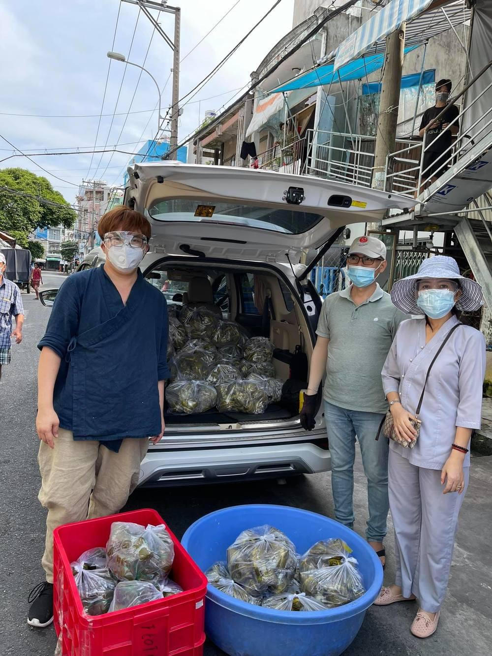 Nam nghệ sĩ chia sẻ, anh cùng với nhiều bạn bè đồng nghiệp đã mang 3.000 cái bánh và tổng cộng 3,7 tấn rau đến cho các nơi mà bà con cần. Đoàn khởi hành lúc 12h trưa đi qua các quận 12, 3, 5, 8, 9, 10, 6 và Bình Tân, Tân Phú, huyện Bình Chánh, mang rau và bánh đến những khu phong toả, cách ly hoặc những nơi bị thiếu lương thực. Đến 9h30 tối mới "giải quyết" xong số hàng hóa.