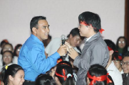 MC Quyền Linh là một trong hai khách mời của phần tọa đàm về gương vượt khó, cùng với học sinh Hồ Thị Liễu (lớp 11C THPT chuyên Lê Quý Đôn) mồ côi cha mẹ.