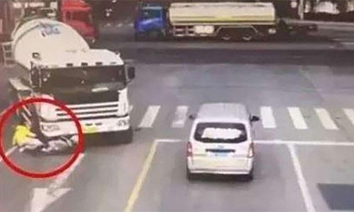 Mẹ bầu bị cuốn vào bánh xe tải.Ảnh: SMCP. |