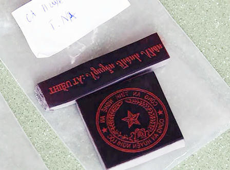 | 283 con dấu giả của cơ quan Nhà nước, tổ chức, doanh nghiệp, các sở ban ngành thu giữ được tại nhà con gái (ảnh Công an Nghệ An) |