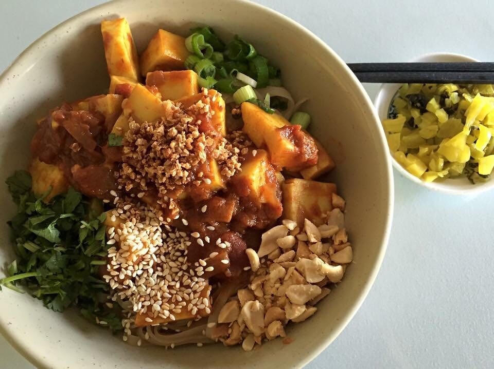Đậu phụ ăn kèm với mì có thể là đậu hũ tươi hoặc cũng có thể được xắt miếng vừa ăn rồi chiên trong chảo dầu cho đến khi vàng ruộm, giòn tan là được. Bật mí cho bạn là món đậu phụ Shan này, ngoài việc ăn nóng với mì thì còn có thể ăn lạnh với nộm, tương ớt, đậu phộng giã nhuyễn hoặc ăn chiên cùng với nước chấm.