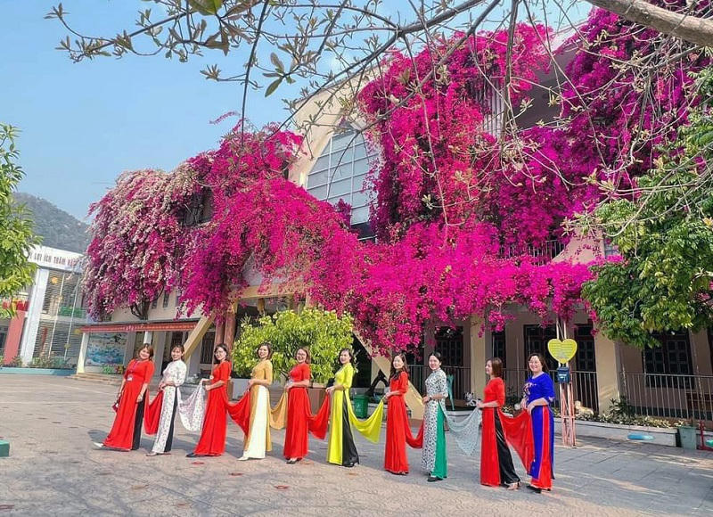Bà Khúc Thị Loan, Hiệu trưởng Trường mầm non Lò Văn Giá cho biết: Những giàn cây hoa giấy này trồng cách đây 12 năm về trước, khi nhà trường mới vào hoạt động. Lúc đó, ý tưởng của cán bộ, giáo viên là trồng cây để lấy bóng mát và tạo cảnh quan xanh, thân thiện với môi trường. Điều bất ngờ, chỉ sau vài năm cây phát triển tốt, ngọn cây vươn dài lan rộng bám chắc trên tường nhà phủ quanh trường học, còn hoa thì nở quanh năm.