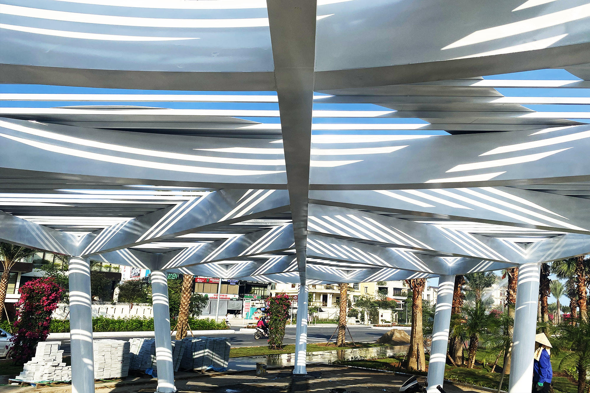Tuyến đường cũng được bố trí các điểm dừng chân hình chiếc lá cách điệu, hệ thống ghế đá nguyên khối cùng hệ thống lan can có kết cấu thép, cách điệu biểu trưng cho di sản thế giới