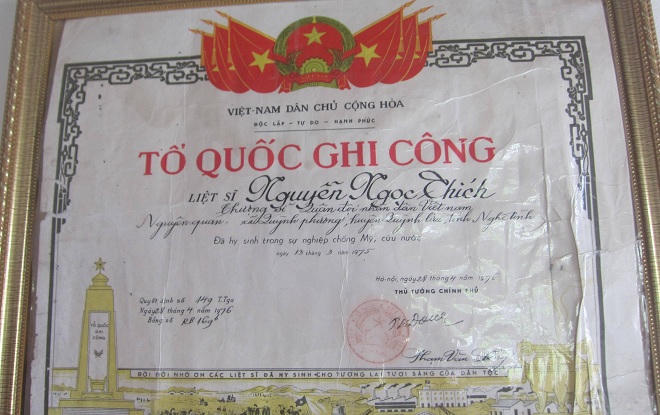 Hiện lá thư này vẫn đang được bà Xích cất giữ cẩn thận. Cũng căn cứ bức thư quý giá này mà hàng năm, gia đình đã chọn ngày 13/3 để làm lễ giỗ cho liệt sỹ Nguyễn Ngọc Thích.