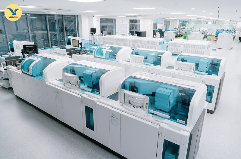 MEDLATEC sở hữu hệ thống máy móc hiện đại, nhập khẩu hoàn toàn từ Mỹ, Đức, Nhật Bản, Thụy Sĩ… trong đó tiêu biểu như hệ thống Automation đầu tiên có ở khu vực Đông Nam Á, hệ thống máy GLP Abbott, máy A3600 (Abbott), Alinity C-I-M, Cobas 8100, Cobas c503, Cobas e80, hệ thống LC-MSMS (Hệ thống sắc ký lỏng khối phổ 2 lần), hệ thống ICP (hệ thống khối phổ plasma cảm ứng)… với công suất thực hiện lên tới chục nghìn mẫu xét nghiệm mỗi giờ. Do đó, Trung tâm Xét nghiệm MEDLATEC được đánh giá là đơn vị y tế ngoài công lập đi đầu Việt Nam trang bị đồng bộ hệ thống máy móc, kỹ thuật hiện đại, tự động.