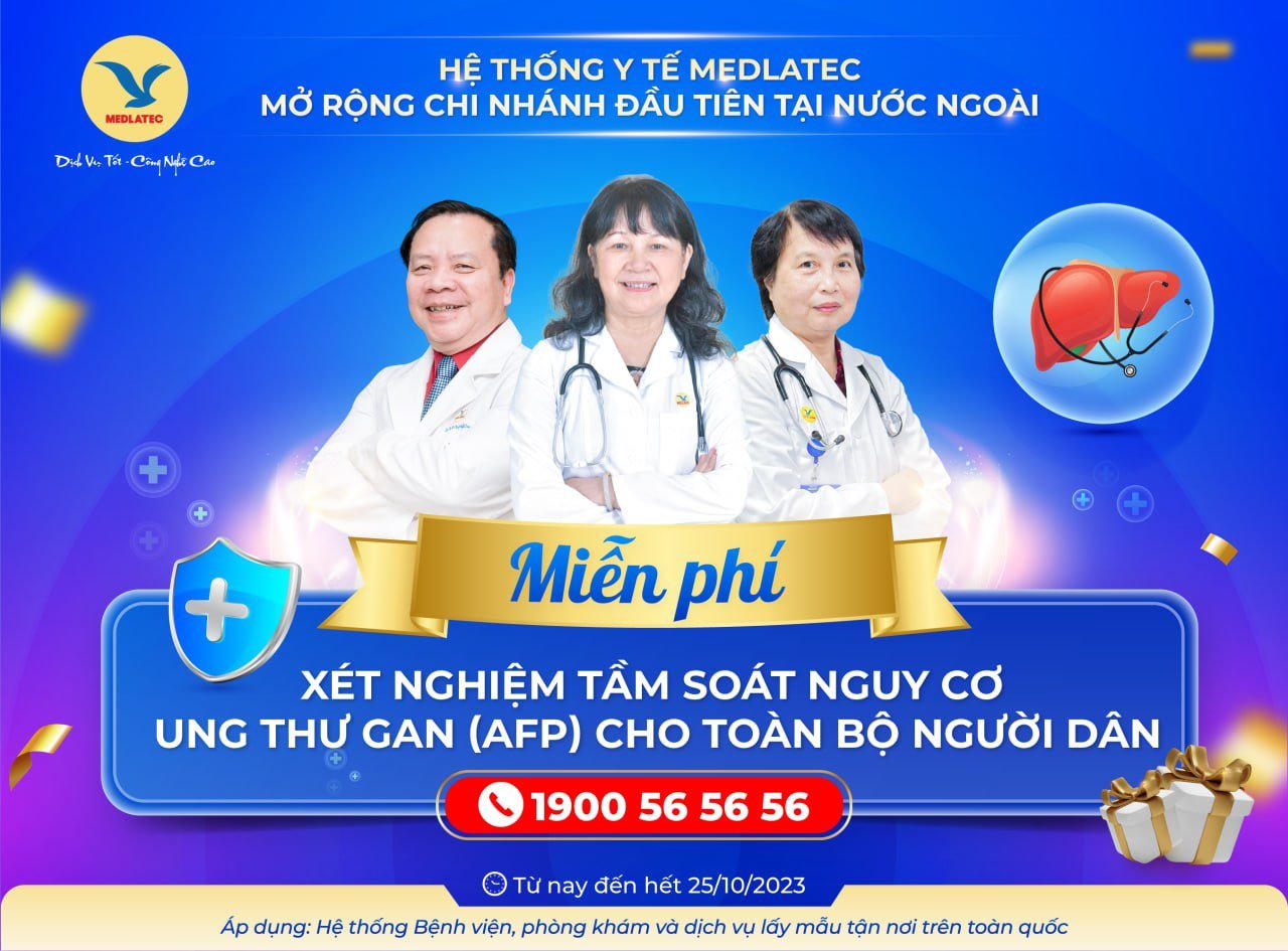 (PLVN) - Chào mừng MEDLATEC Campuchia chính thức đi vào hoạt động, từ 5/10 - 25/10/2023, Hệ thống Y tế MEDLATEC miễn phí xét nghiệm tầm soát nguy cơ ung thư gan (AFP). Đây là cơ hội đặc biệt để người dân trên toàn quốc phát hiện sớm ung thư gan trước báo động về căn bệnh nguy hiểm này ngày càng gia tăng tại Việt Nam.