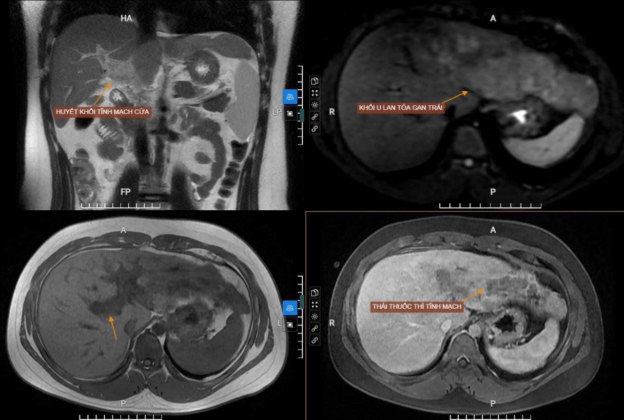 Sau khi tiến hành hội chẩn, các bác sĩ kết luận đây là khối ung thư gan lan tỏa nhu mô gan phải, có xâm lấn và gây huyết khối tĩnh mạch cửa.