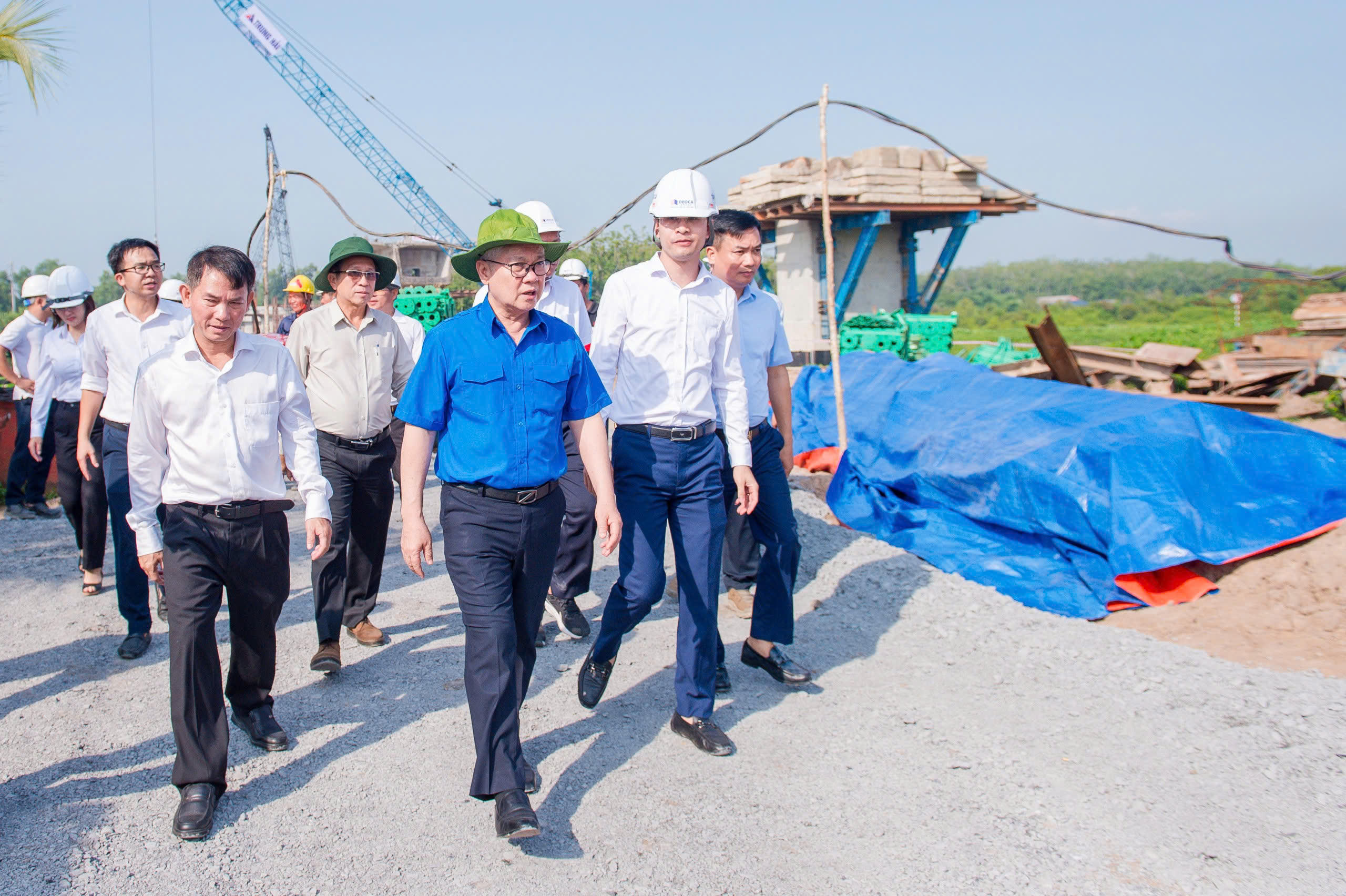 Bí thư tỉnh uỷ Bình Dương Nguyễn Văn Lợi (áo xanh) cùng thành viên đoàn khảo sát dự án huyết mạch - đường Hồ Chí Minh, nối Đồng bằng Sông Cửu Long với các tỉnh Tây Nguyên. |