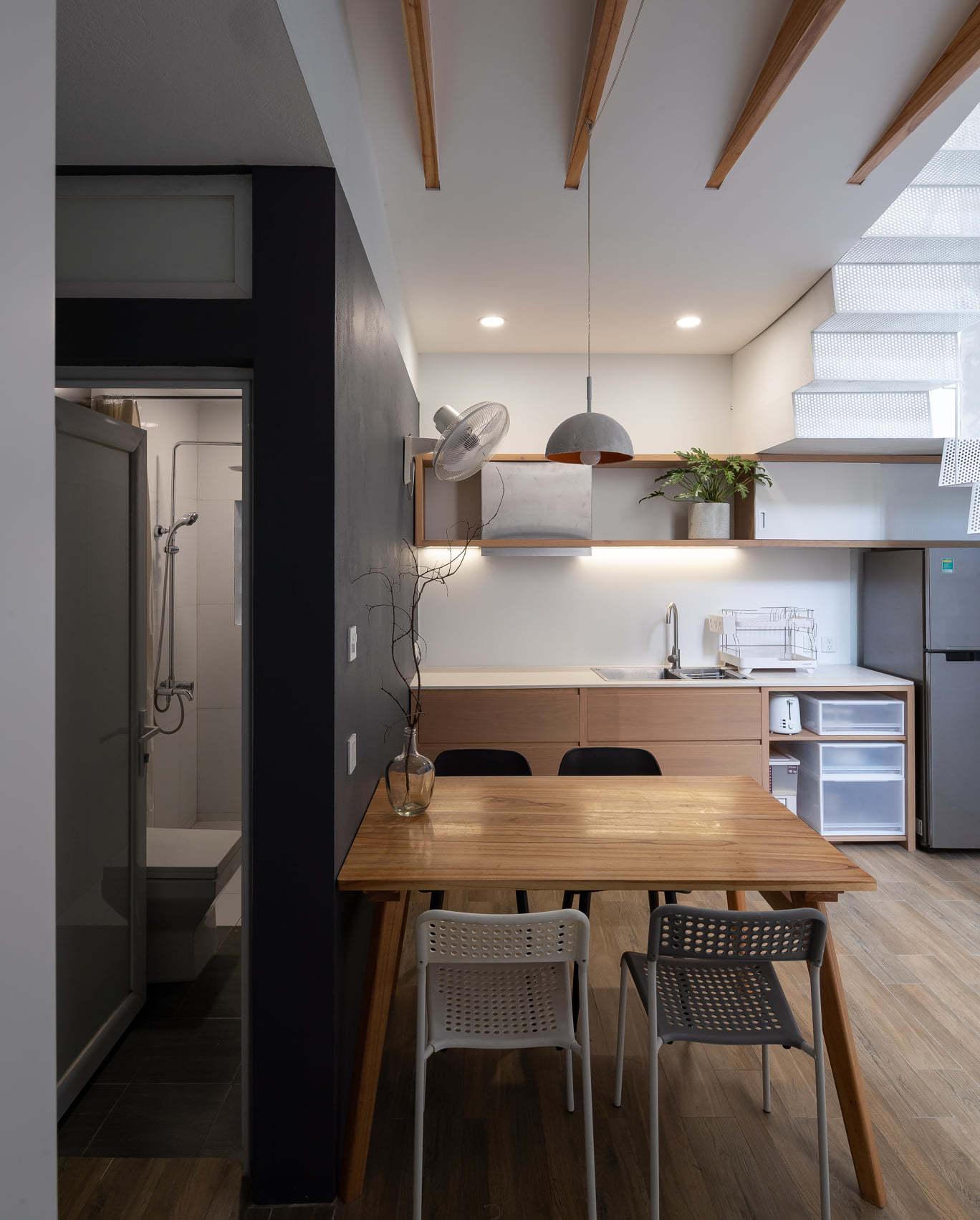 Đối với phòng bếp nhỏ, bạn có thể lựa chọn những mẫu bàn ăn thông minh như: Bàn gấp, bàn kéo dài, bàn ăn kết hợp với tủ rượu hoặc kệ trang trí…Những sản phẩm này có thể giúp gia đình bạn biến đổi không gian một cách nhanh chóng và dễ dàng, tận dụng tối đa diện tích mà không gây ảnh hưởng đến tính thẩm mỹ của căn phòng.