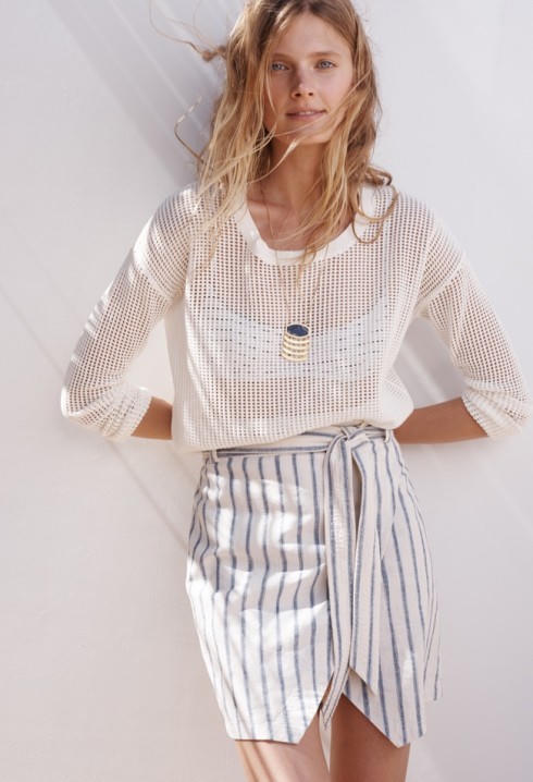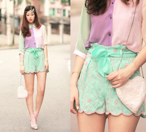 Những chiếc áo có màu pastel trong trẻo không chỉ làm dịu mắt ta giữa nắng chói chang mùa Hè, ngăn việc hấp thụ tia bức xạ mặt trời mà còn cực kì dễ phối đồ đặc biệt là item không thể thiếu là chiếc quần shorts jean xanh đầy năng động. Bên cạnh đó họa tiết sọc xanh trên nền trắng, một xu hướng hot của thời trang mùa Hè năm nay cũng là một lựa chọn cực kỳ ăn ý.