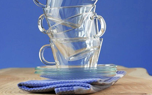 Đồ thủy tinh sẽ sạch bóng và sáng loáng nếu bạn cho thêm một vài giọt giấm hoặc một ít muối khi rửa.