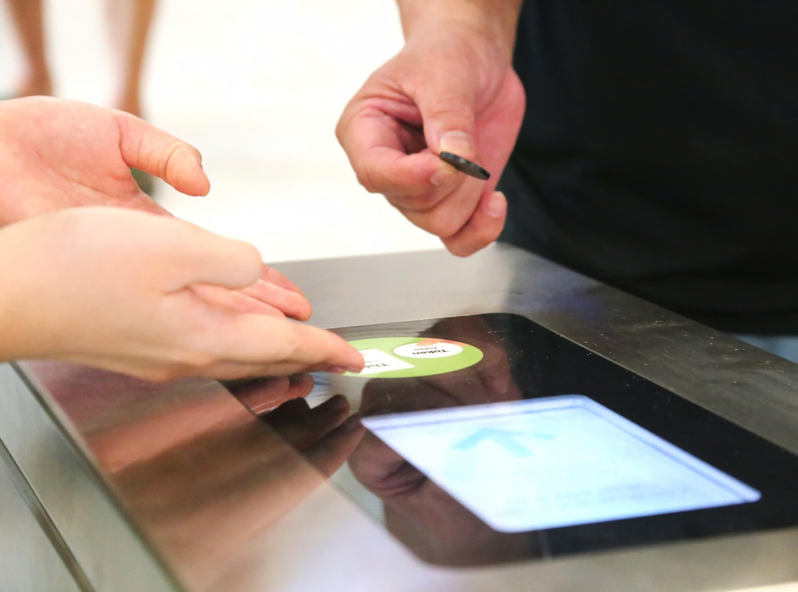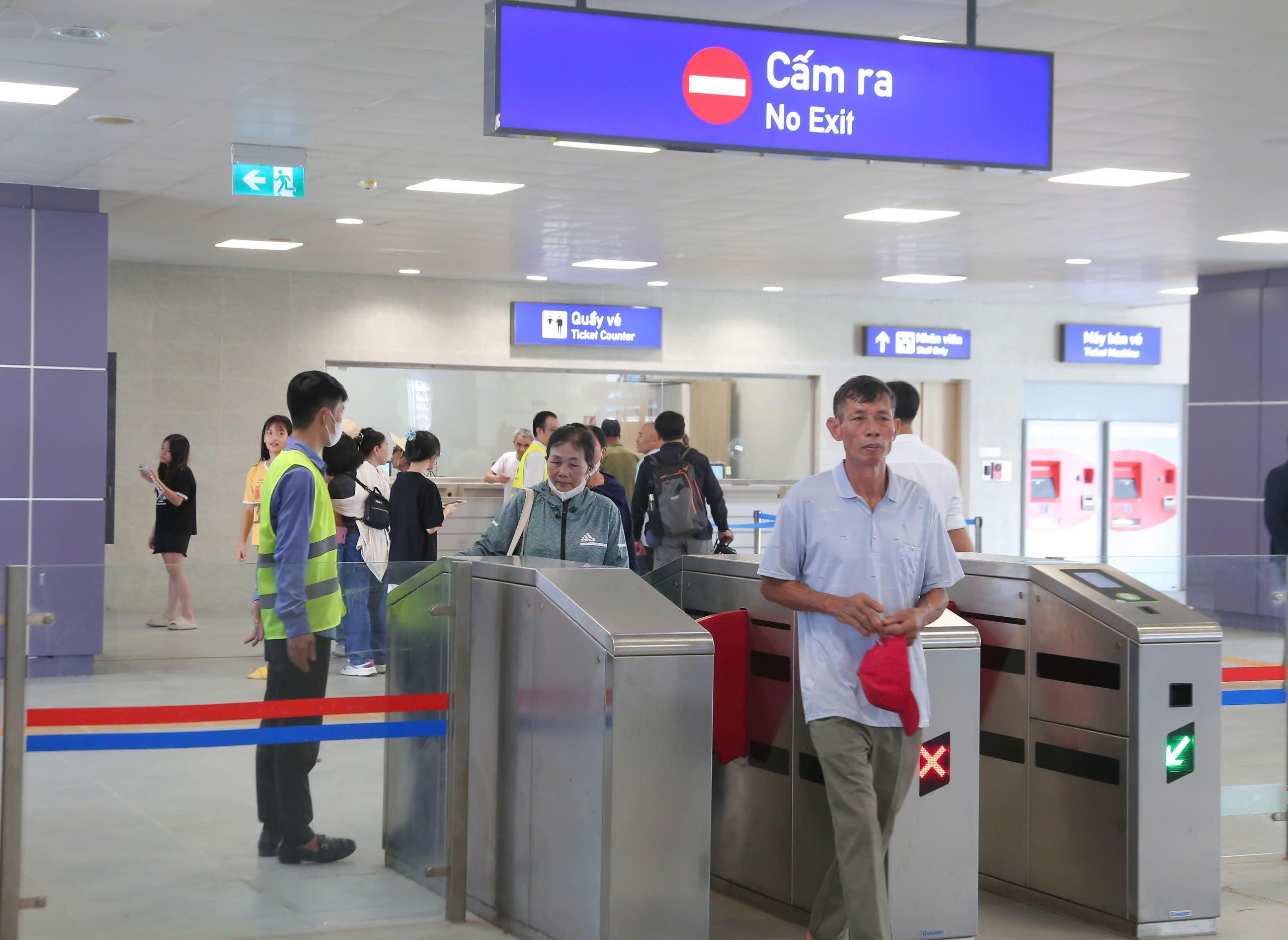 Người dân được hướng dẫn sử dụng vé của tuyến Metro Nhổn - ga Hà Nội. |