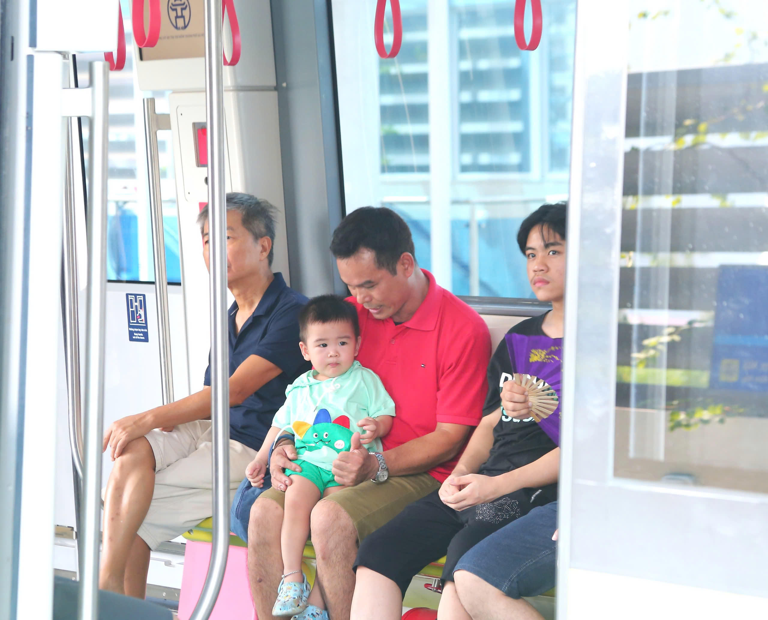 Cả những em bé được bố mẹ cho đi tàu. |