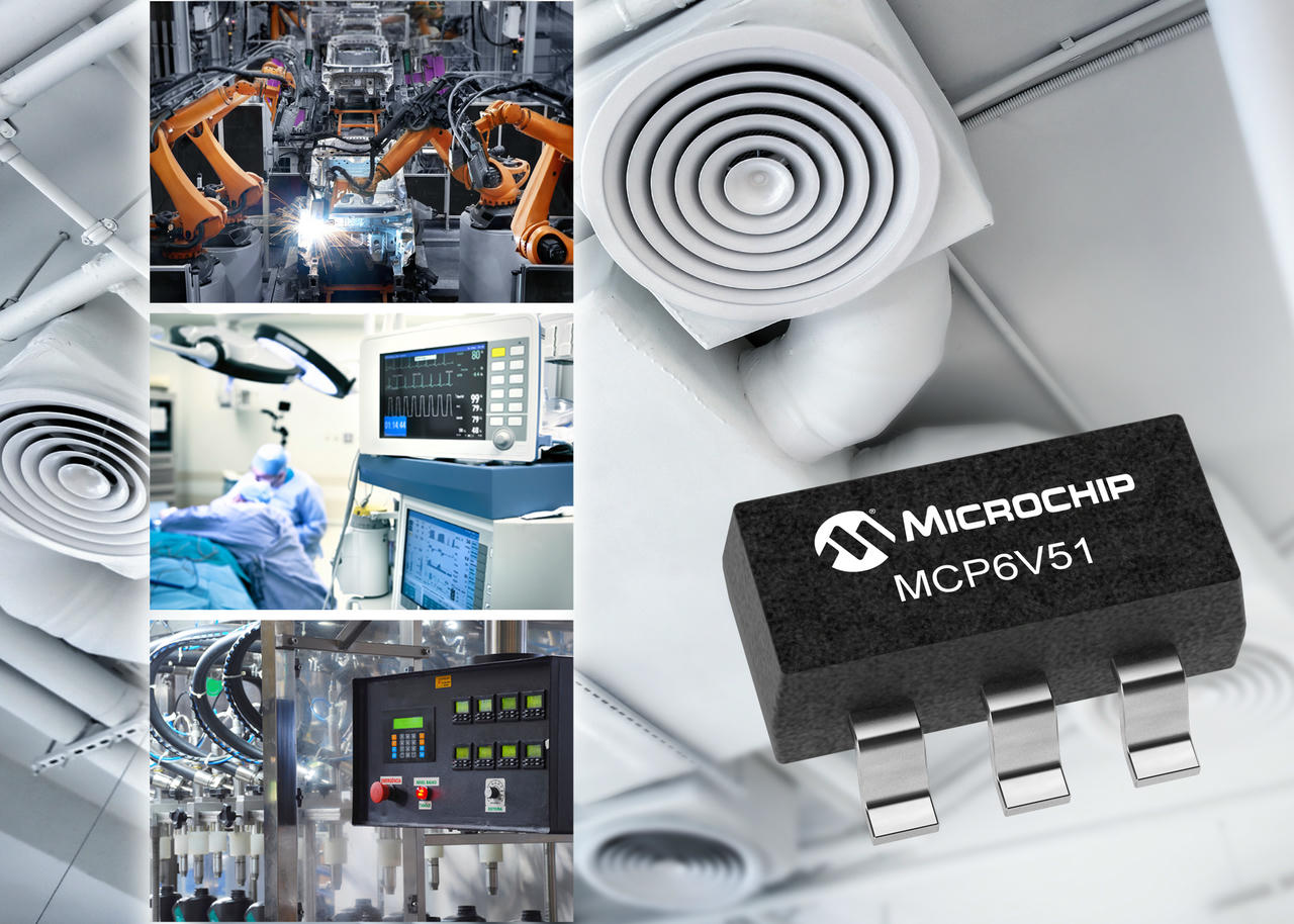 Sự phát triển của điều khiển công nghiệp và tự động hóa nhà máy đã dẫn đến sự gia tăng số lượng các cảm biến cần được giám sát, và bộ khuếch đại MCP6V51 được thiết kế để cung cấp dữ liệu chính xác, ổn định từ nhiều loại cảm biến khác nhau. Kiến trúc tự sửa lỗi zero-drift của MCP6V51 cung cấp dòng điện một chiều (DC) độ chính xác cực cao, với độ lệch tối đa là ±15 microvolts (µV) và chỉ sai lệch ±36 nanovolts cho mỗi độ C (nV/°C). MCP6V51 là lựa chọn lý tưởng cho các ứng dụng như tự động hóa nhà máy, kiểm soát quy trình và tự động hóa tòa nhà; MCP6V51 cũng đồng thời hỗ trợ dải điện áp hoạt động cực rộng từ 4.5V đến 45V.
