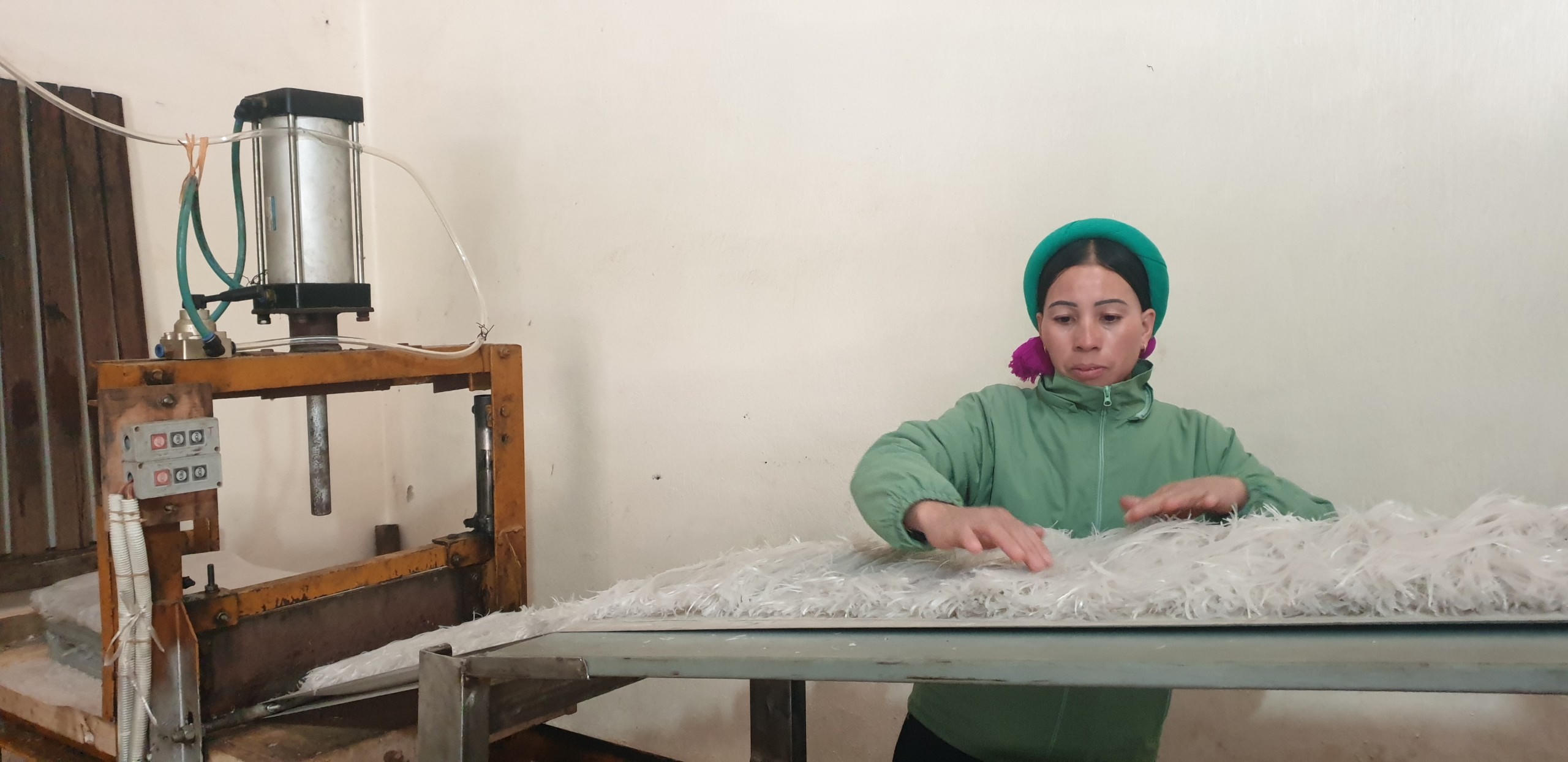 Sau khi cắt sợi, miến dong sẽ được phơi tiếp một đến hai nắng tuỳ thời tiết. Ảnh: Quang Hà |