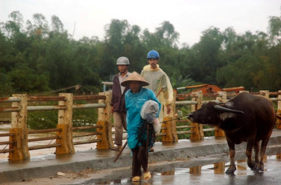 | Người dân Quảng Nam di dời đến nơi trú tránh bão |