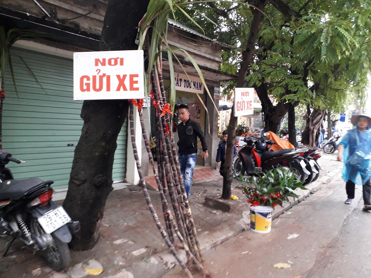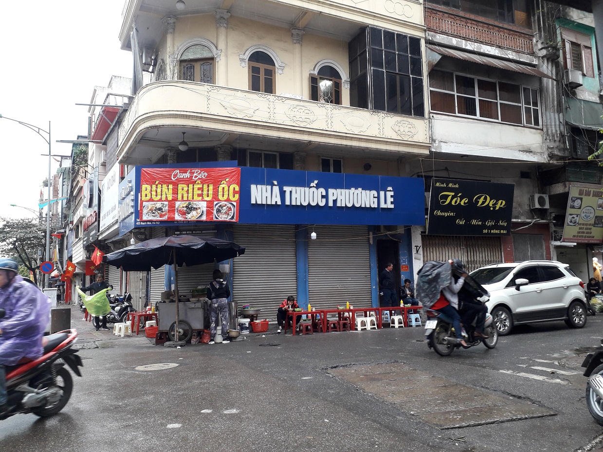 Quán bún riêu tranh thủ ngày mùng 1 vươn ra tận mặt đường lớn bán hàng