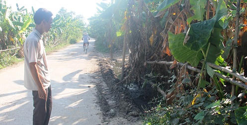 Phóng viên ra thực tế địa điểm xả “phân bón” MV-L dạng lỏng xuống, chứng kiến cây chuối bị khô vàng lá, đất có màu đen và bốc mùi hôi, hắc... Theo một số người dân, những hôm thời tiết nắng nóng, khu vực này bốc mùi, mưa xuống thì nước dềnh lên đen ngòm.