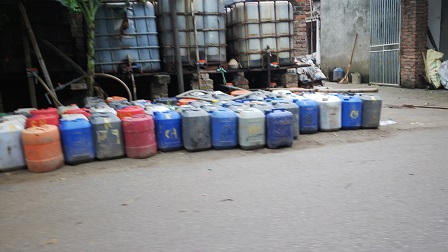 Trên địa bàn xã có 4 điểm bán, tại tất cả các điểm này các thùng, can đựng “nước thải” được bày bán la liệt, sản phẩm không nhãn mác, không hướng dẫn sử dụng, không có quy chuẩn chất lượng; nhìn ngoài có màu đen, mở ra thì mùi hắc sộc lên. Những người bán hàng cho biết, thông thường, một chủ đại lý xe téc của nhà máy chở đến đây vào ban đêm, bơm vào thùng to, rồi các hộ tự chiết ra can 20 lít để bán.