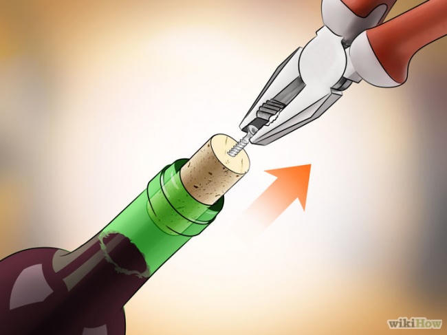 Bạn có tin một ốc vít có thể thay thế dụng cụ mở rượu chuyên dụng? Nghe có vẻ khó tin nhưng đó là sự thật 100%. Bạn chỉ cần cho dùng lực xoáy ốc vít vào vị trí nút chai. Khi bạn cảm thấy ốc vít đã đạt đến độ sâu vừa ý, bạn có thể sử dụng chiếc kìm kéo mạnh ống vít cùng nắm chai bật ra. Với động tác này, bạn cần khéo léo giữ chặt chai để tránh trường hợp lực kéo quá mạnh làm đổ rượu.