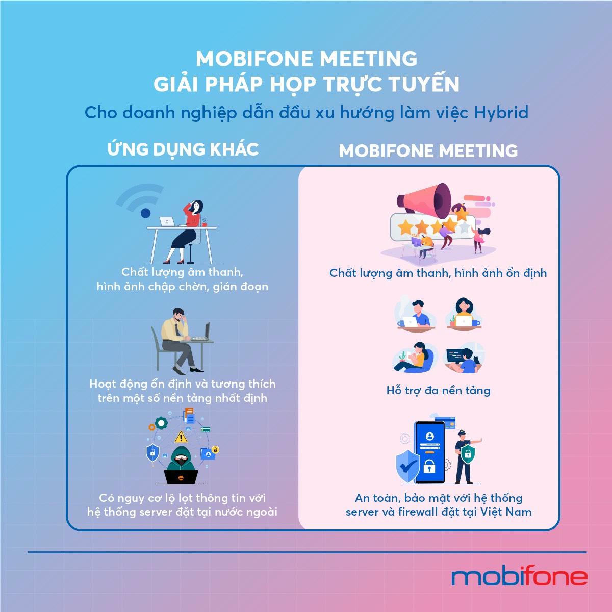 (PLVN) - Mô hình làm việc kết hợp giữa văn phòng và làm việc trực tuyến đang là xu hướng mới, thay thế mô hình làm việc truyền thống hiện nay. Với ưu điểm là kết nối nhiều địa điểm khác nhau trên toàn cầu, tổ chức phòng họp với chi phí tiết kiệm…, giải pháp hội nghị truyền hình trực tiếp MobiFone Meeting là công cụ đắc lực đem lại lợi ích vượt trội cho mô hình làm việc hybrid working.