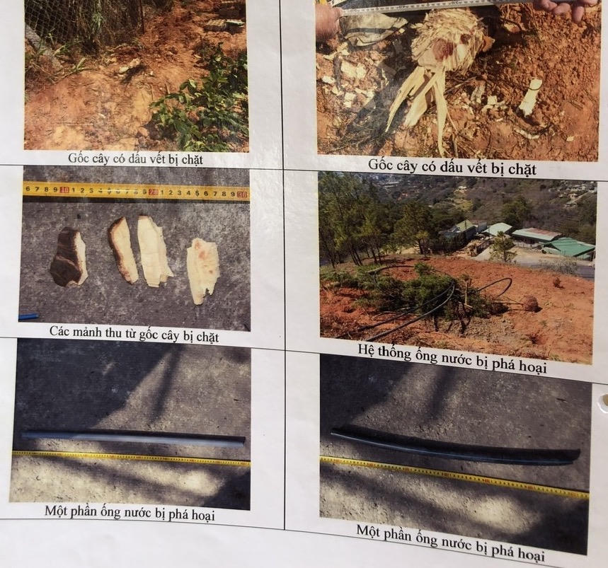 Đây là vụ án kéo dài hơn 5 năm nay, đã 4 lần đưa ra xét xử, nhiều lần trả hồ sơ điều tra bổ sung. Theo cáo trạng, sáng 10/2/2019, tại khu đất trên, 3 bị cáo có hành vi sử dụng xăng dầu, dao, tay chân huỷ hoại tài sản của ông Nguyễn Văn Sáu gồm 65 cây tùng, 148 cây cẩm tú cầu, 42 cây cúc thân gỗ; dây nguồn, dây tín hiệu và phần chân đế của 2 camera. Tổng giá trị tài sản thiệt hại 61 triệu đồng.