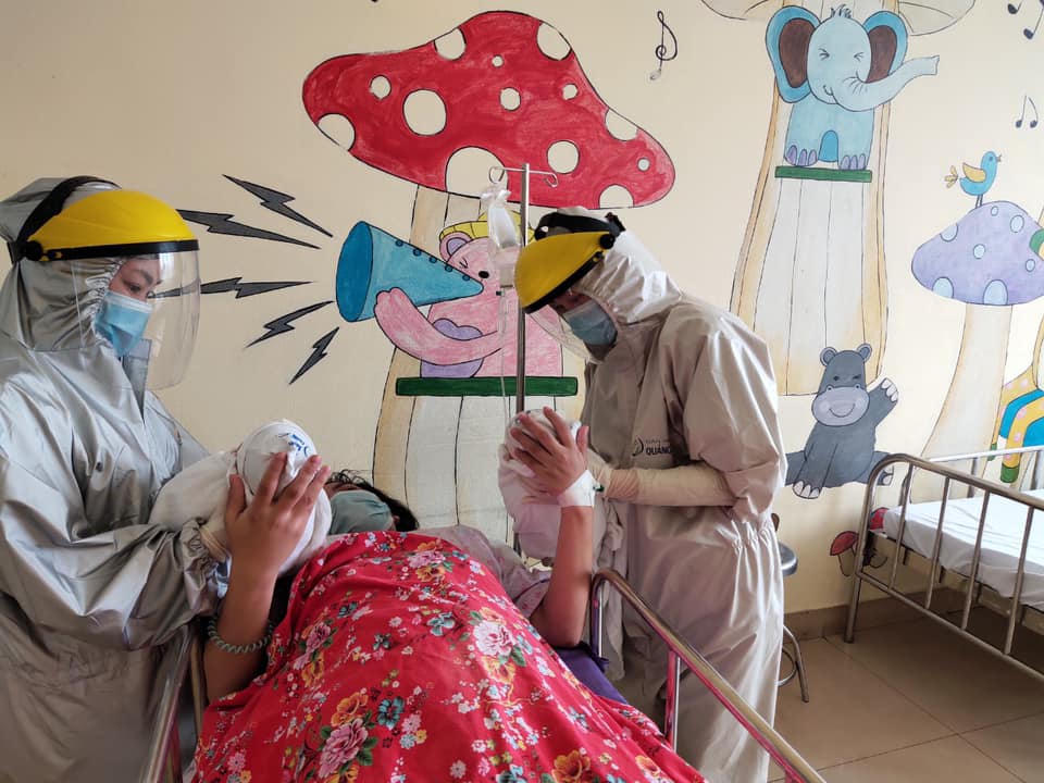 Trong lúc chờ kết quả xét nghiệm COVID-19, sản phụ chuyển dạ, kíp phẫu thuật hội chẩn và chỉ định mổ cấp cứu lấy thai, đồng thời chủ động dự phòng truyền máu trong mổ, ngăn chặn những nguy cơ xấu nhất cho bệnh nhân.