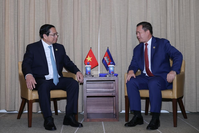 Thủ tướng Chính phủ Phạm Minh Chính đã tận dụng tối đa thời gian để gặp tất cả Lãnh đạo cấp cao các nước ASEAN. Trong ảnh, Thủ tướng Chính phủ Phạm Minh Chính gặp Thủ tướng Campuchia Hun Manet - Ảnh: VGP/Nhật Bắc